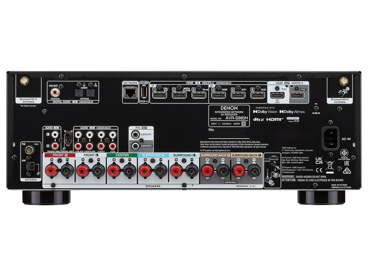 Denon AVR-S980H делает звучание телевизора проще. Подключите колонки, телевизор, игры и потоковое видео через один центральный узел с поддержкой видео 4K и 8K. AVR-S980H растет вместе с вами: начните с простой 2-канальной конфигурации, расширьте до 5.1, затем до